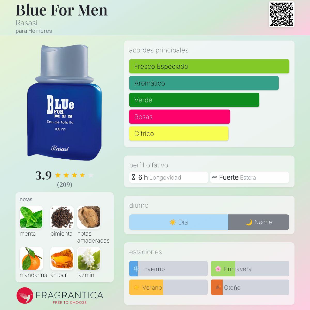 Blue for Men by Rasasi es una fragancia diseñada para hombres que buscan un aroma fresco, dinámico y fácil de usar en cualquier ocasión. Su composición mezcla notas cítricas, acuáticas y aromáticas sobre un fondo amaderado suave, creando una estela limpia, juvenil y muy atractiva. Es perfecto para el día a día, oficinas, climas cálidos o rutinas activas gracias a su sensación refrescante y su elegancia sutil. Con buena duración y un perfil versátil, Blue for Men es una opción ideal para quienes quieren oler moderno, fresco y totalmente confiables.
