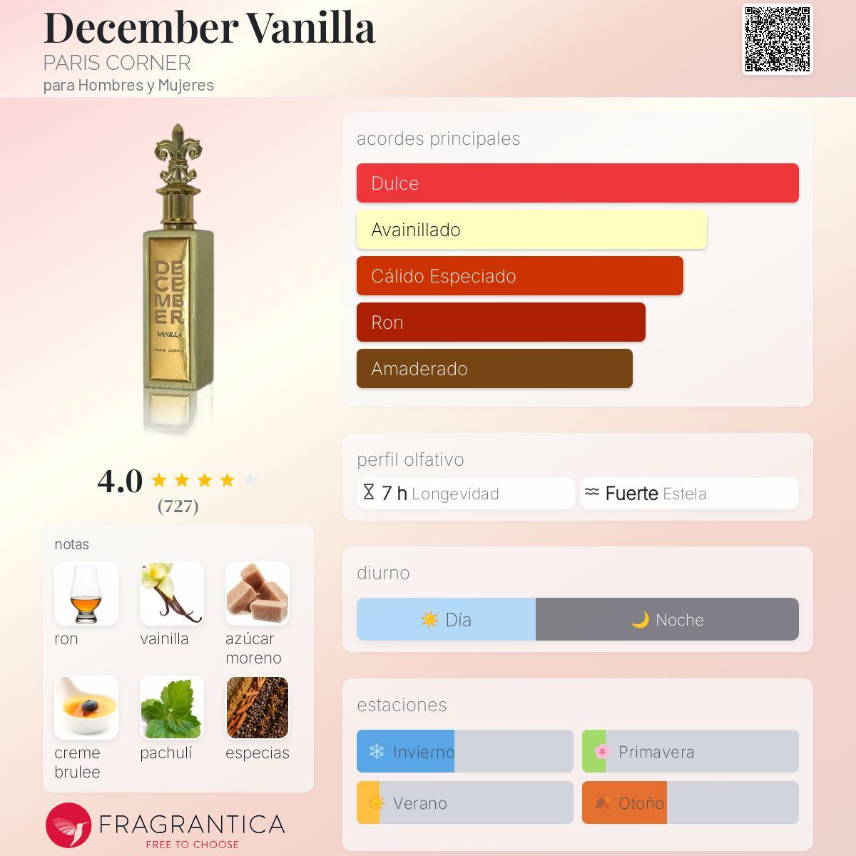 December Vanilla es un perfume dulce, cremoso y reconfortante, con un aroma cálido que envuelve y enamora desde el primer instante.