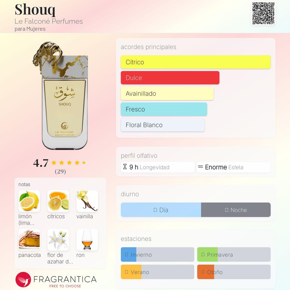 Shouq es una oda al contraste. Su esencia logra equilibrar lo imposible: la frescura con la profundidad, la alegría con la seducción. Desde el primer instante, revela una personalidad magnética que cautiva sin esfuerzo. No se trata solo de un perfume, sino de una experiencia sensorial que envuelve la piel con elegancia y deseo, dejando una huella imposible de olvidar.